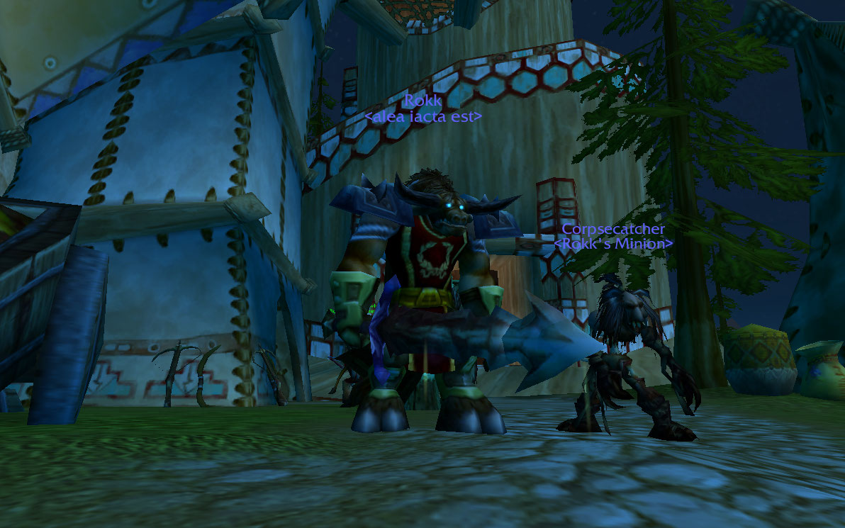 With Rukgut hitting 80 and farting around searching for the SpiritBeast, I'd lost some of the drive to use him. I needed a break, but whocould I use? The next highest level character I had was one that Ireally didn't like. I wasn't a big fan of Death Knights. Even after I levelled one to 60, Ijust left him in Thrallmar. I couldn't get into it. Wasn't feeling it,so to speak. The class was spreading across servers like locusts, and anumber of people who played the class came off so cocky I wanted toreach through the monitor and smack the DPS out of them. Rukgut had hit a wall. Rokk wasn't doing anything. I respecced him and took him for a walk. Next thing I knew, he was 64, over 200 in Blacksmithing and Mining, andhis fishing was coming along. Wow. Who knew? Rokk is Unholy for the most part, with a ghoul pet. Maybe the pet givesme that feeling of familiarity of questing alone, yet not really beingalone. Maybe it was that 63 gold elite that I killed back when I was61. Hard to put my finger on it, but there's a certain level ofsatisfaction that can be found by killing something face to face. In blogging news, BigRedKitty has hung up his blogging tights. Sad day,but I wish him all the best. If it wasn't for BRK, Rukgut would benothing.