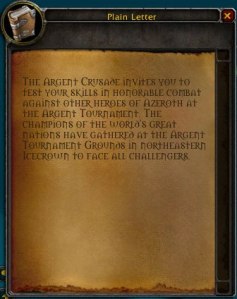 Really? Argent Tournament? Kinda thought that was a bit of a low level to start this particular questline, but what the Hell. This was one great big hunk of Tauren that wasn’t afraid to get his hands dirty, regardless of level.