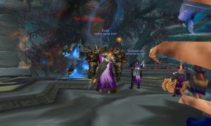 I quickly set down and instantly noticed a drake mount was nearby. A quick icon sweep over it revealed it to be an 80 Dranei paladin. I was worried. Why was he just sitting there? Oh crap, he wants to kill it for the Achievement!