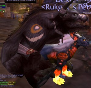Needless to say, I’ve been having fun with the Dungeon Finder when I’ve had the time to use it. I’ve been testing the water with my Hunter, just to get the hang of dealing with people. Some, like the druid who humped Rukgut’s wolf to kill some time, were more interesting than others.