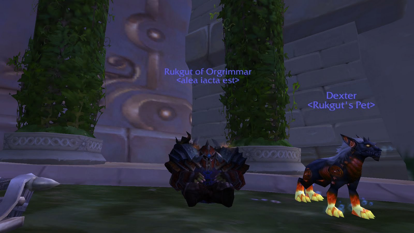 For as long as I’ve know him, Rukgut has never been quite right in the head, even for an Orc. The fact that he’s a Grand Master Engineer says all that needs to be said about the Hunter. Still, despite the fact that he’s been in so many Pick Up Groups that he has been awarded the title “the Patient”, he proudly wears the title “of Orgrimmar” over his head. He’s proud of his people, not the people.