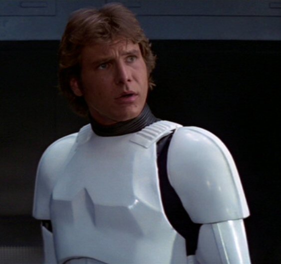 I remember watching Star Wars as a young boy and thinking to myself, “These stormtrooper guys are terrible shots. Seriously. I mean, can’t they see out of those helmets?” I was not wrong. The Empire had to cram twenty-five of those guys in a narrow corridor just so they had a chance to hit someone. Han Solo, caught totally by surprise, not only manages to avoid being gunned down by a wall of stormtroopers who were ready to kill him dead in the face, but actually manages to kill one of THEM just by falling backwards and firing in their general direction.
