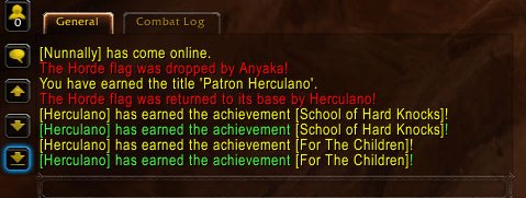 I then watched her drop the flag right in front of me. In a panic, thinking I’d killed her or somehow knocked it out of her hands, I picked it up and returned it. This was promptly followed by the achievement spam, and then by my death as the gnome rogues caught up with their flag runner and ran me through.