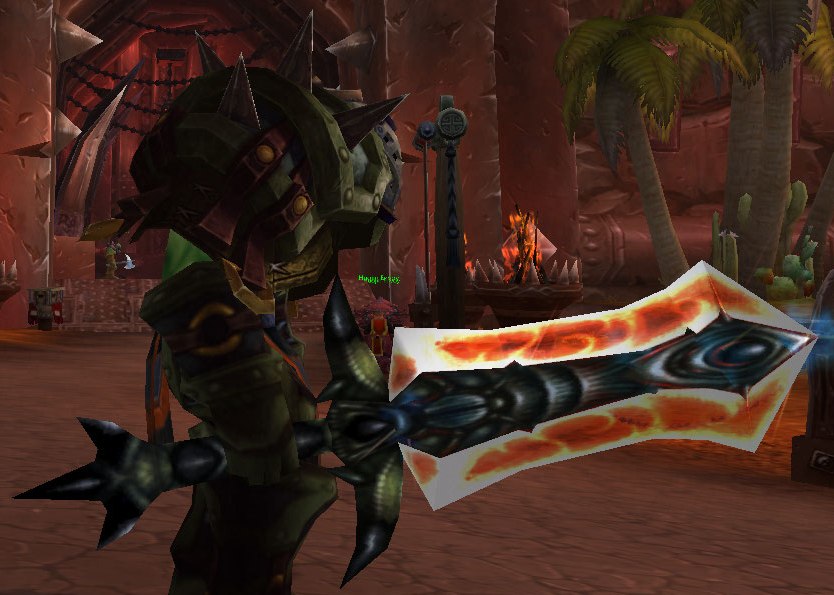 I blame Transmogrification for all of this. Wait, scratch that. I blame the ugly Klaxxi Swords that you buy from the Quartermaster once you reach Exalted. My DK looks sharp, and while I don’t dress to impress others I would like him to be pleasing to my eye. The Amber Flammard of Klaxxi’vess does not have nearly the adequate amount of menace and face-killing that I desire in my weapons.