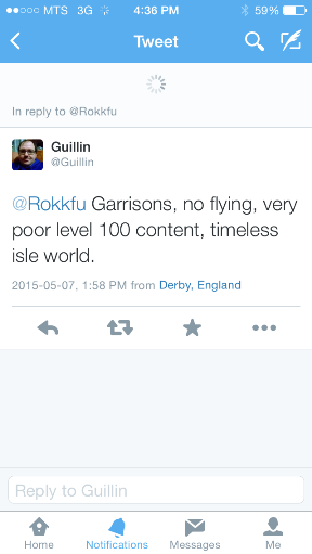 Honestly, it feels like Blizz has really dropped the ball on this. Leveling was easy, which is something I am thankful for. But there’s a reason I didn’t stop at two max level characters. If you don’t raid, what else is there to do at level 100? Apex crystal missions to get gear you can also get from doing nothing (aka garrison missions)? Sure, maybe if I have four hours an evening, every evening, I might care about mulling about trying to build reps for some kind of reward. I don’t know. Personally, it feels like the part of the game that gives me the most reward (gear and gold) is something I don’t even need to do. I don’t need to play my class at all. I could do it on my bank alt.