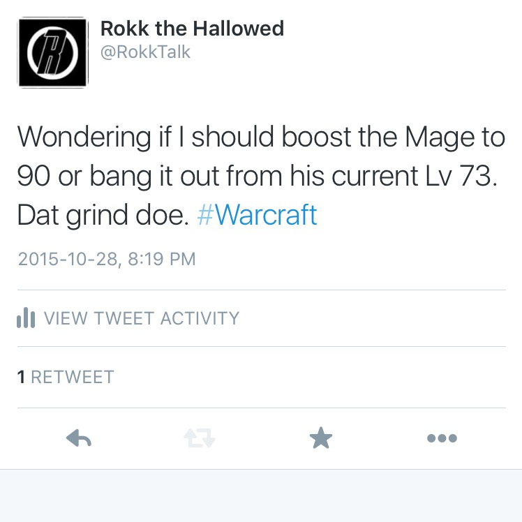 Take now, for example. Specifically the Elixirs of the Rapid Mind. This is great for leveling when you’ve been through the process a few times, give or take a dozen. I was actually starting to get to that leveling burnout point with Odingreen once he’d reached level 73. I was so tempted that I mentioned my dilemma on Twitter, hoping to stir some kind of conversation or at least get some feedback.