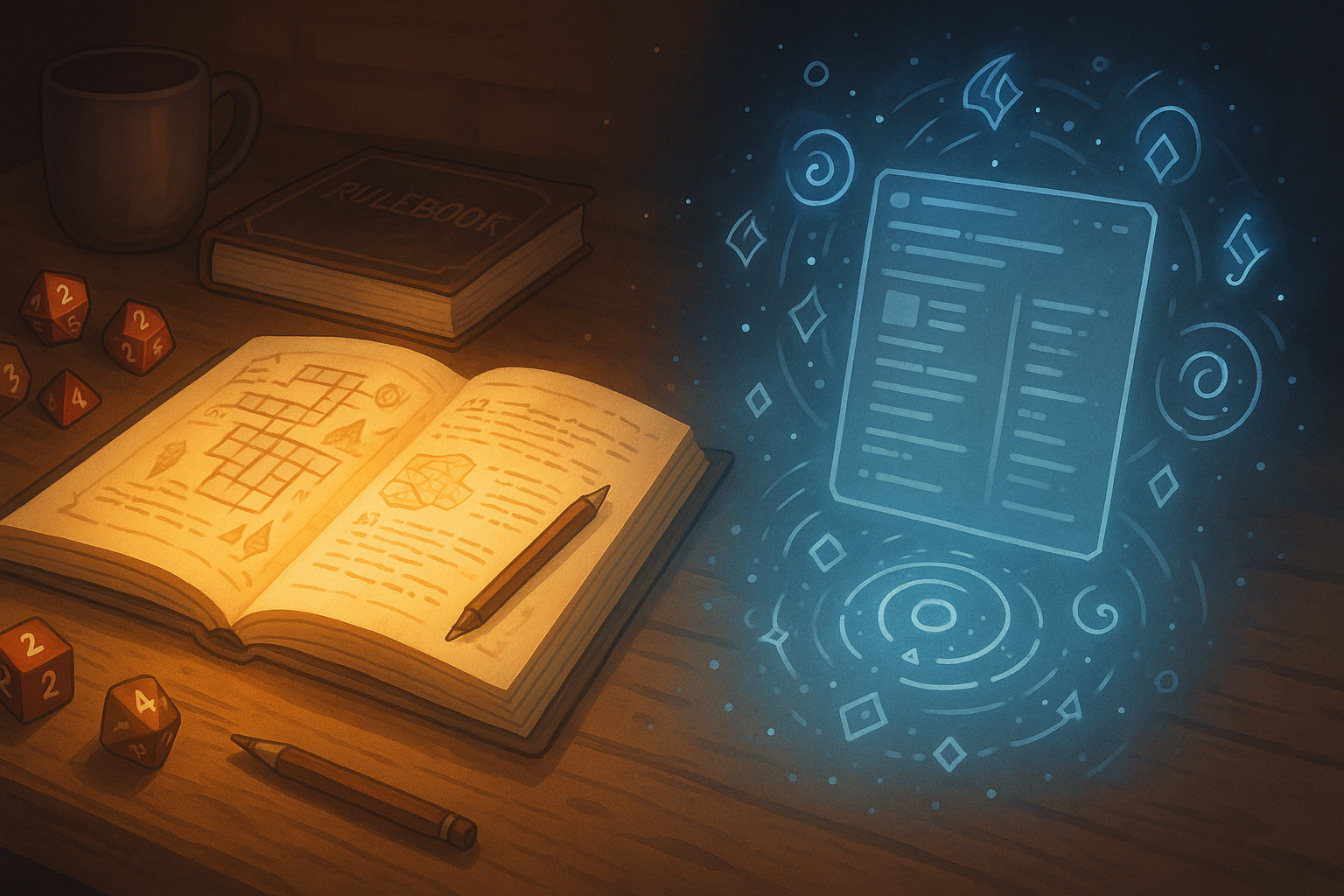 A GM sits down to prep for the week’s session. They open their notebook, stare at the half-finished dungeon sketch, sigh, and think, I’m too tired for this. I’ll just ask the AI to build something. Five minutes later, they’ve got a full quest line, a named NPC, a tragic backstory, and a color-coded dungeon. It’s fast. It’s convenient. And—if you squint—it almost feels like cheating.