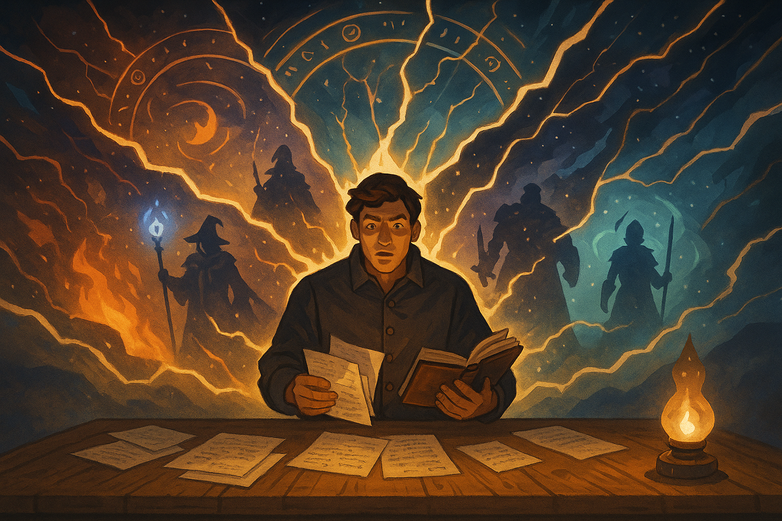 You realize the monsters in the book don’t challenge them anymore. Combat takes an hour per round. Every mystery you build collapses under scry, speak with dead, or true seeing. And while you’re trying to keep up with the fireworks, your players are flipping through character sheets that stretch into dozens of abilities they barely remember.