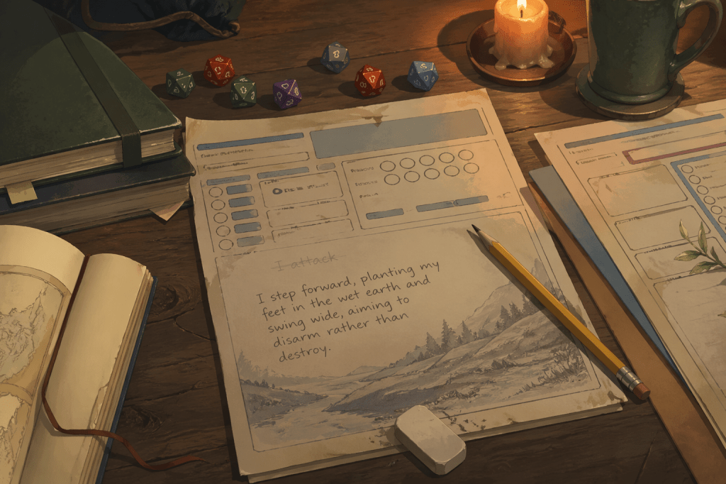 None of this is fast. It’s also not supposed to be. The goal is a table where roleplay becomes the path of least resistance, not the scary alternative.