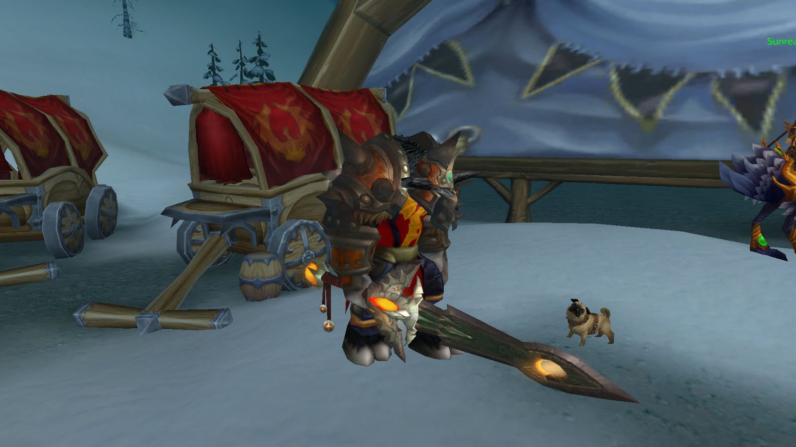 After returning from the completed PuG, the mighty Warrior checked his mailbox. Seems the jokesters at the WoW Dev Team decided to celebrate the achievement by taking a small, rodent-like canine and stuffed him in a box.