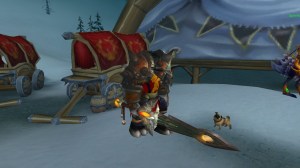Looking down at the slobbering, bug-eyed pooch and watching it drag its butt across the snow, it hit me. Time to take a break. Perhaps the Tauren might put in his papers and ship off to Parts Unknown in the near future. His departure will cause some adjustments to be made in those left behind. Being an Inscriptor & Jewelcrafter was nice, but maybe the Inscription will have to be replaced with Blacksmithing. More gold going his way…